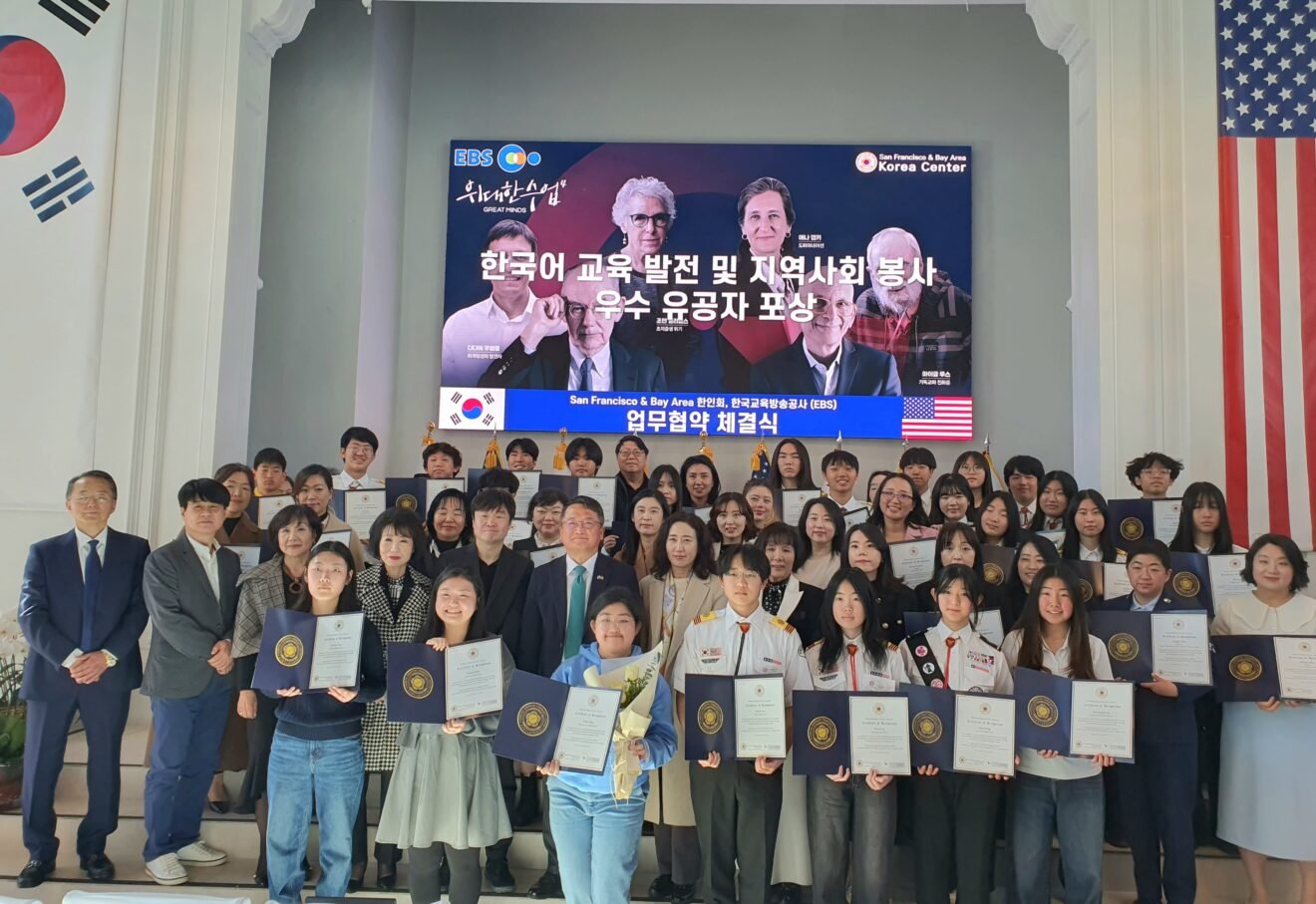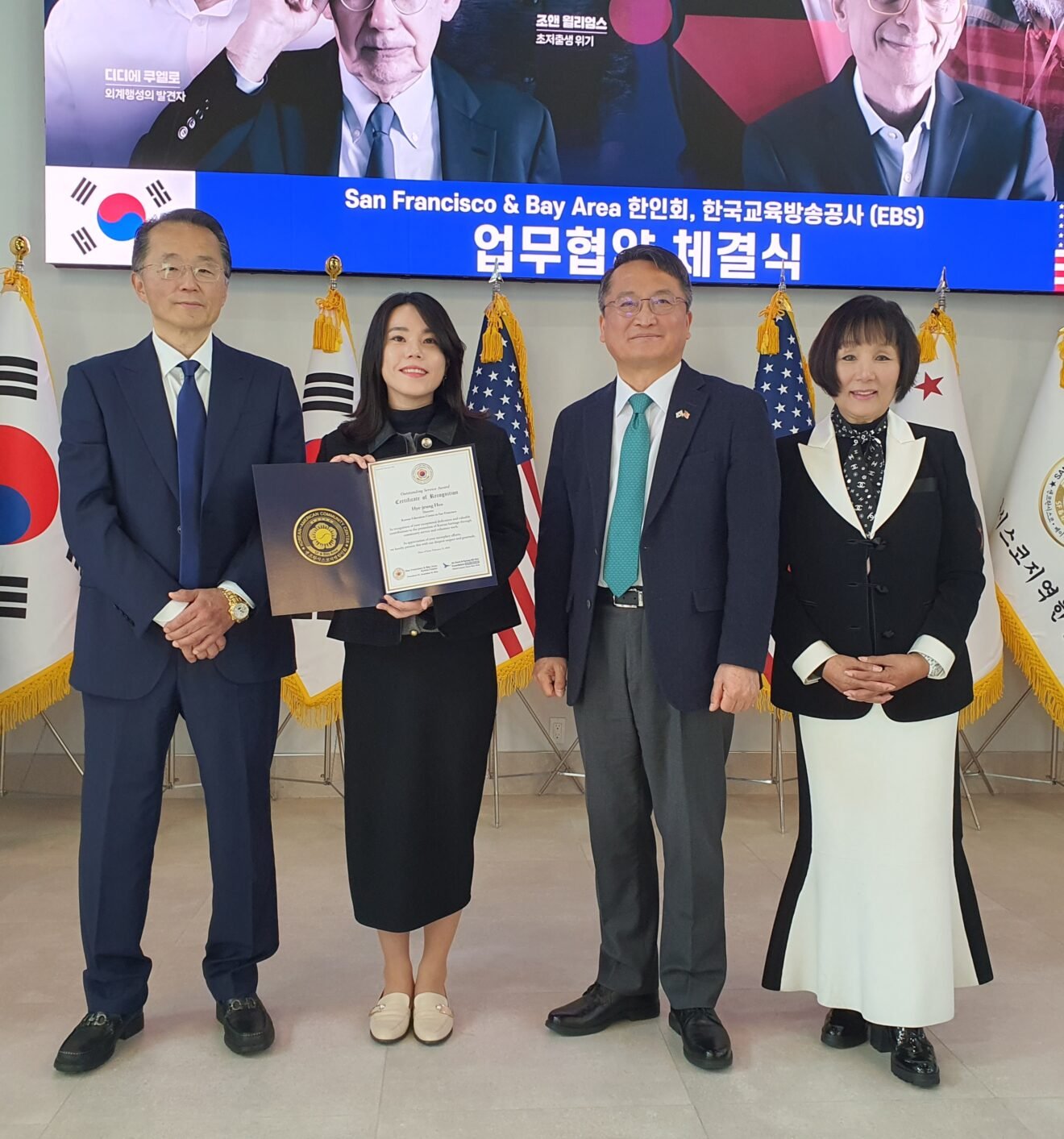 Director Hye-Jung Heo attended the EBS Memorandum of Understanding (MOU) signing ceremony and the awards ceremony recognizing individuals for their contributions to the development of Korean language education, held on Saturday, February 21, at the Korean Community Center of the SF & Bay Area.