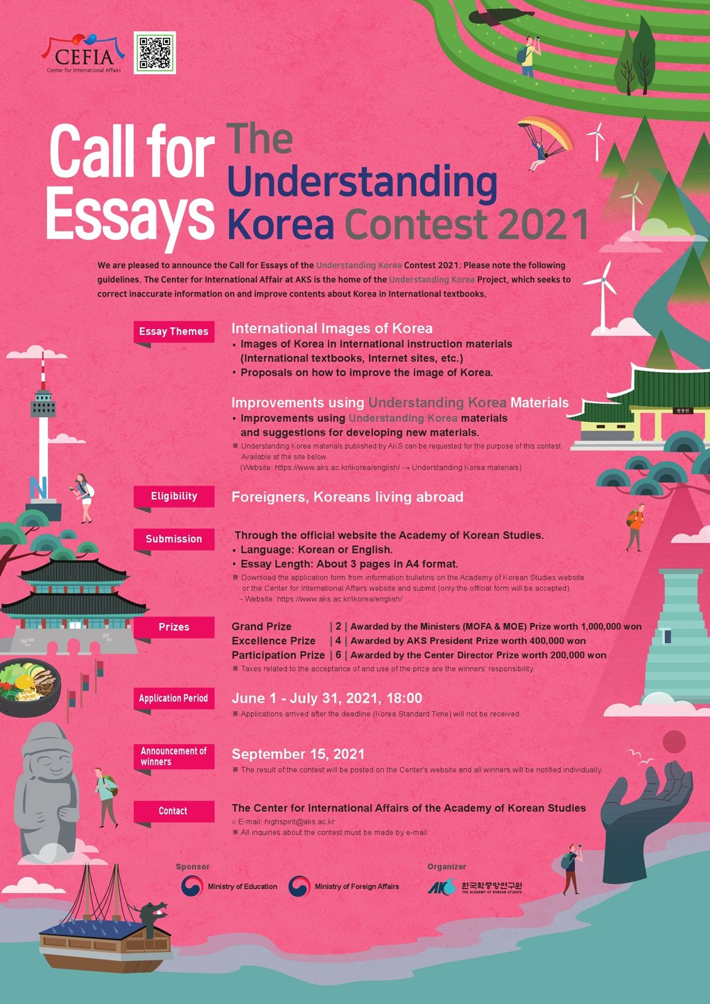 세계 속의 한국 이미지를 개선하고 한국이해자료에 대한 관심을 높이기 위하여 2021 『내가 한국바로알리기의 주인공』 에세이를 아래와 같이 공모합니다.