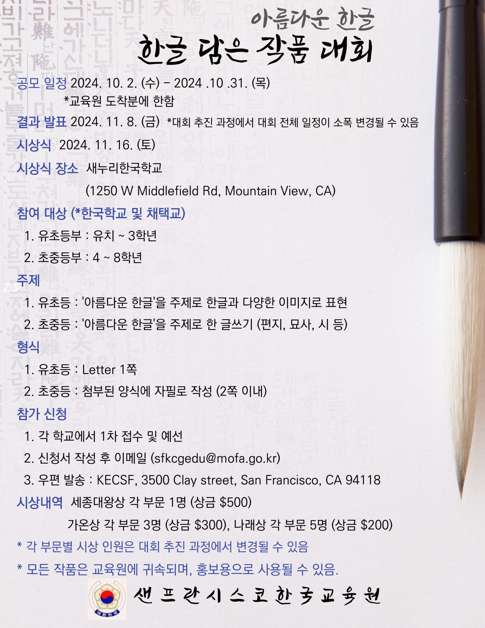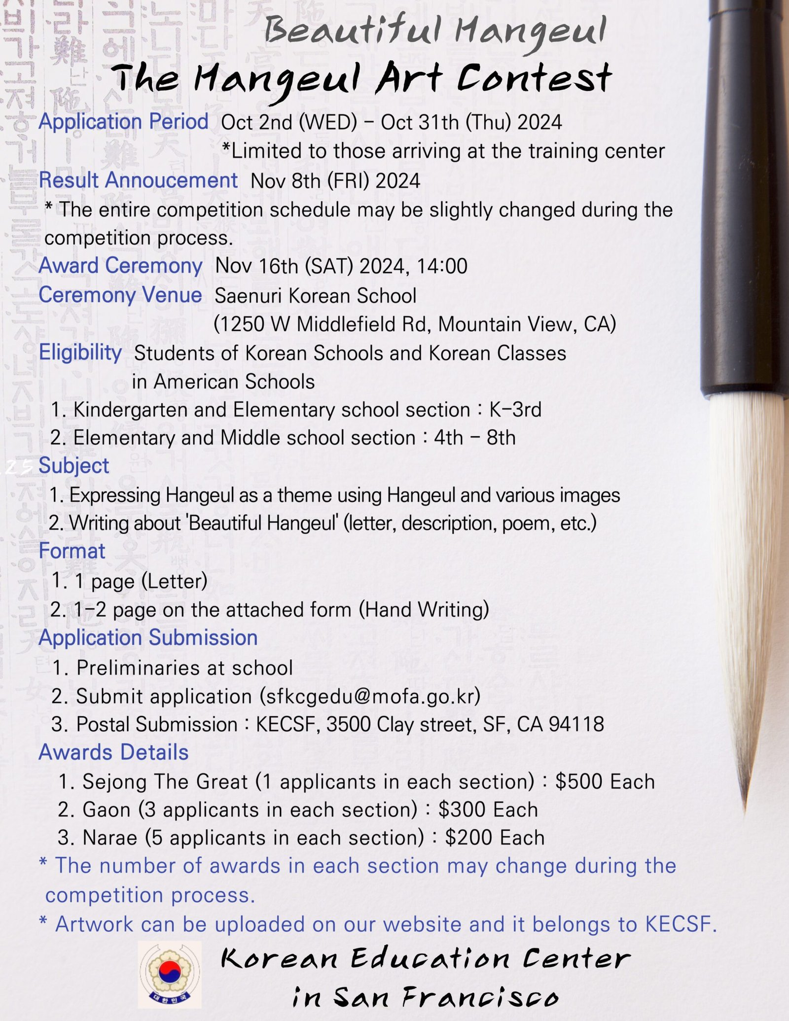 2024 한글 담은 작품 대회 안내 (2024 Hangeul Art Contest Announcement)