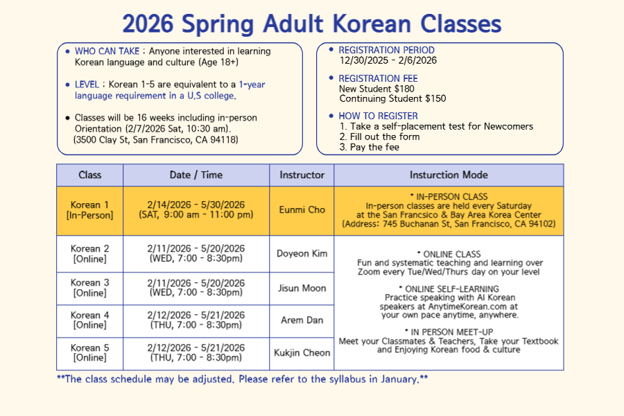 2026 Spring Adult Korean Classes Registration Announcement