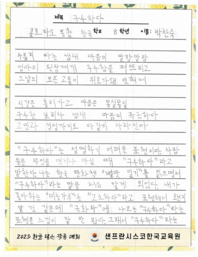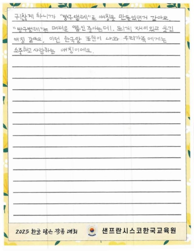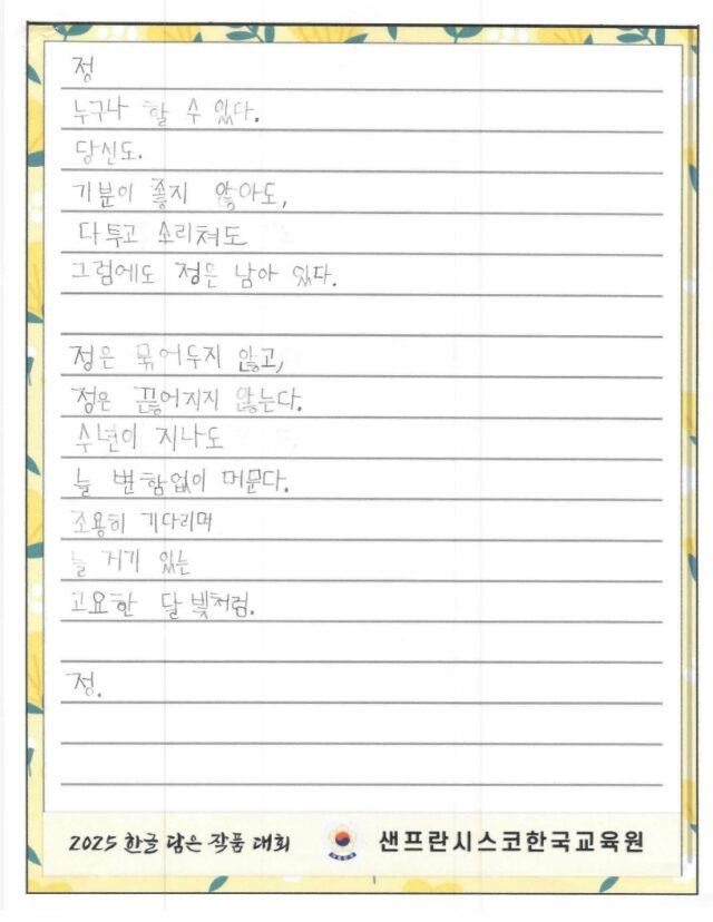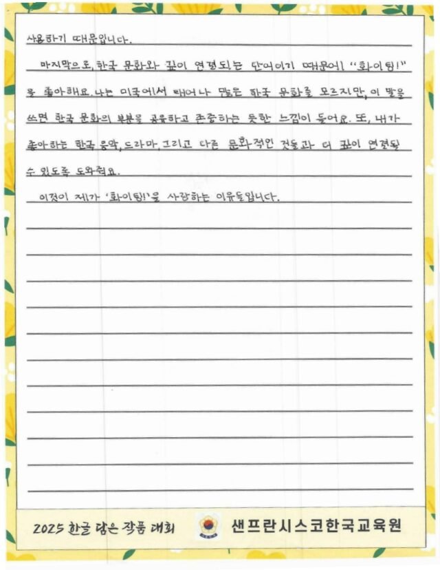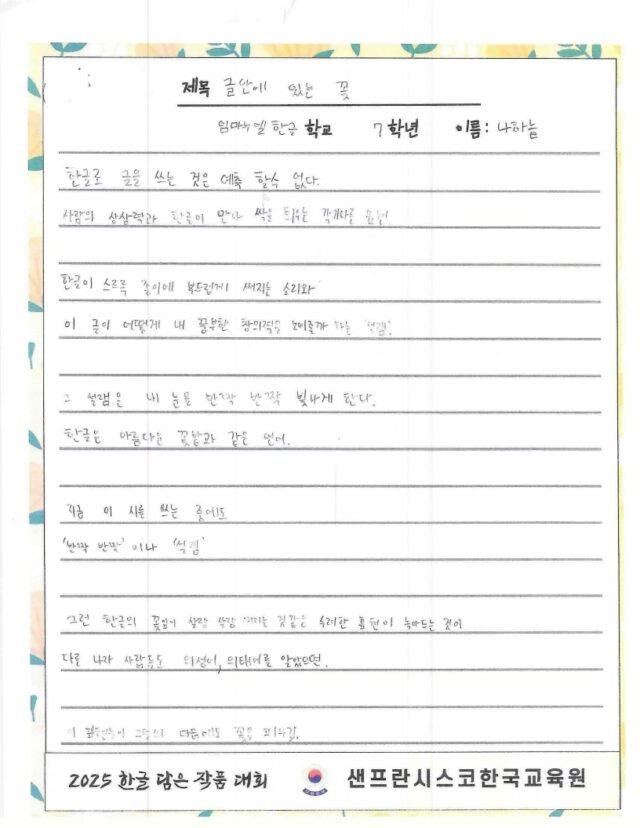 We hope to spread the beauty of Hangeul and Korean culture through the Hangeul Art Contest, for both weekend Korean schools and elementary school students by selecting artworks that express their love for Hangeul.