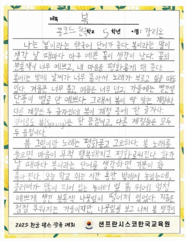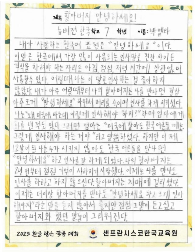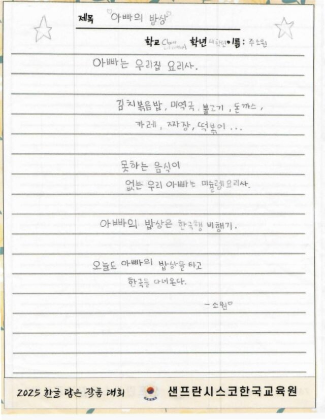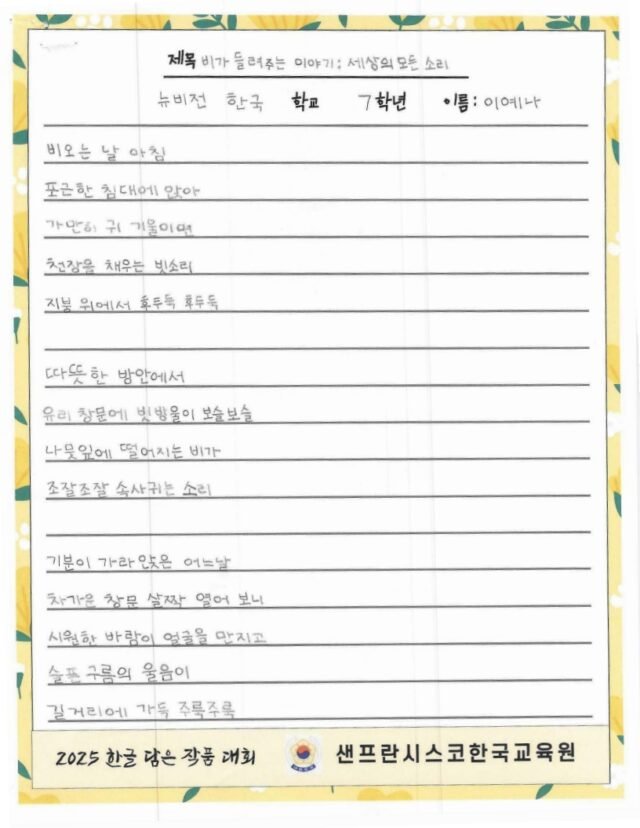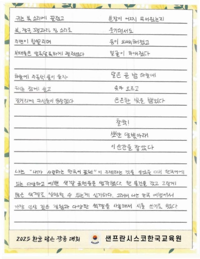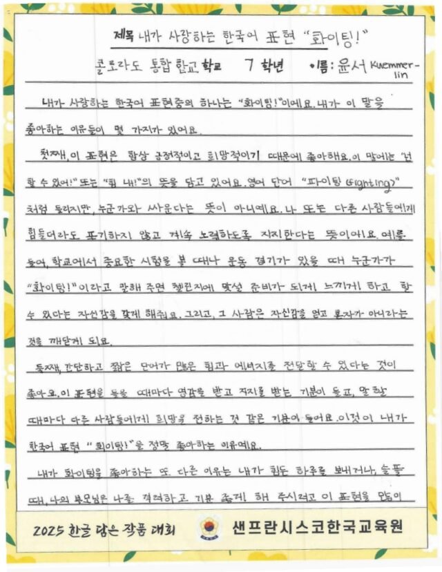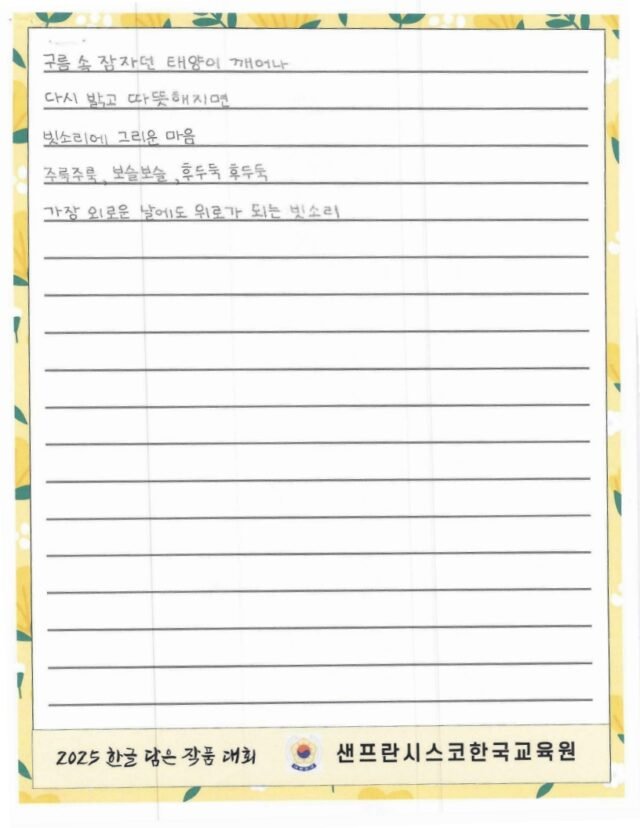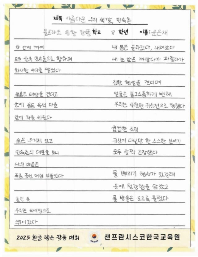 주말 한국학교, 한국어 채택 초등학교의 유초등학생을 대상으로 한글 사랑에 대한 마음을 잘 표현한 작품을 선정하여 시상하여 한글과 한국 문화의 아름다움을 널리 전하고자 합니다.