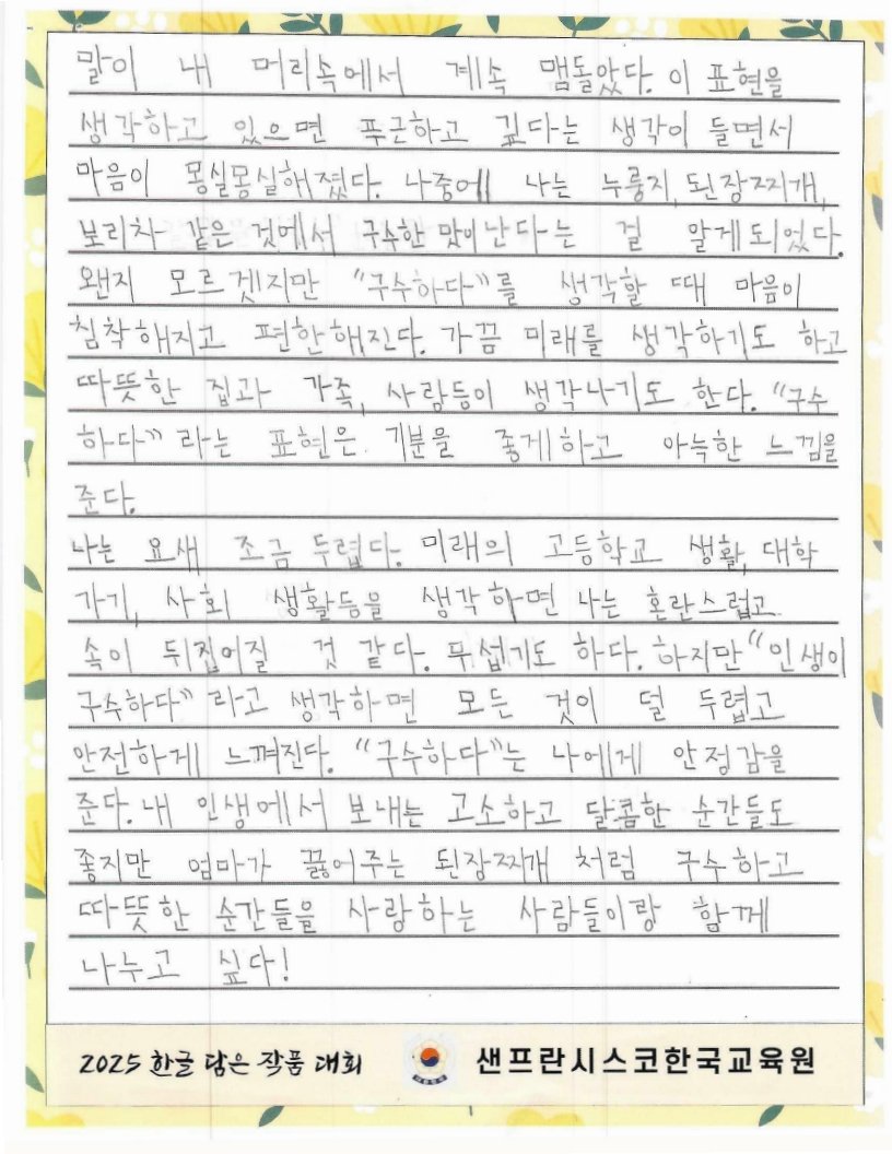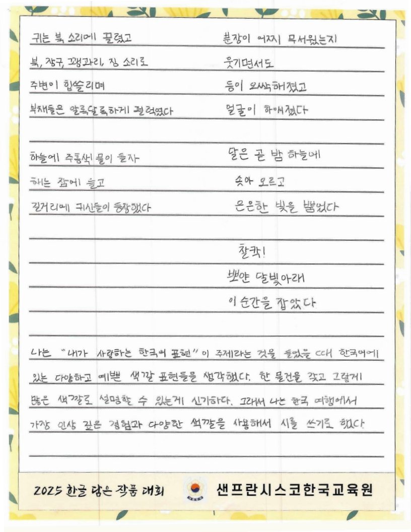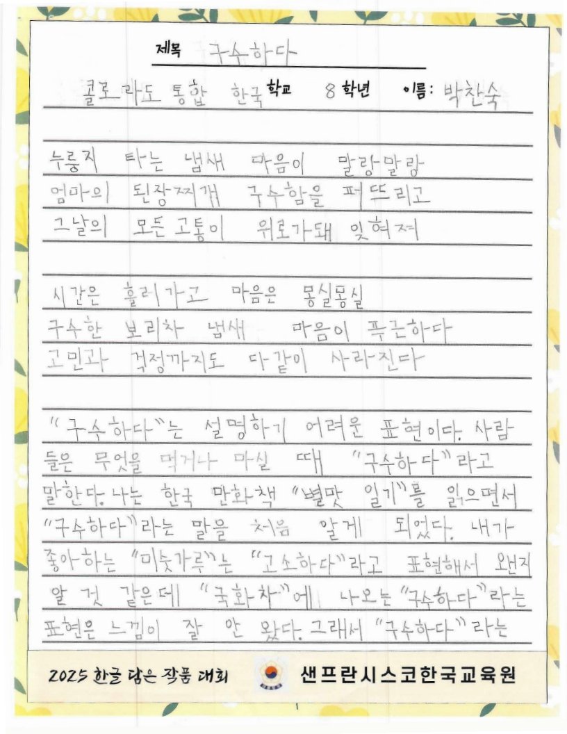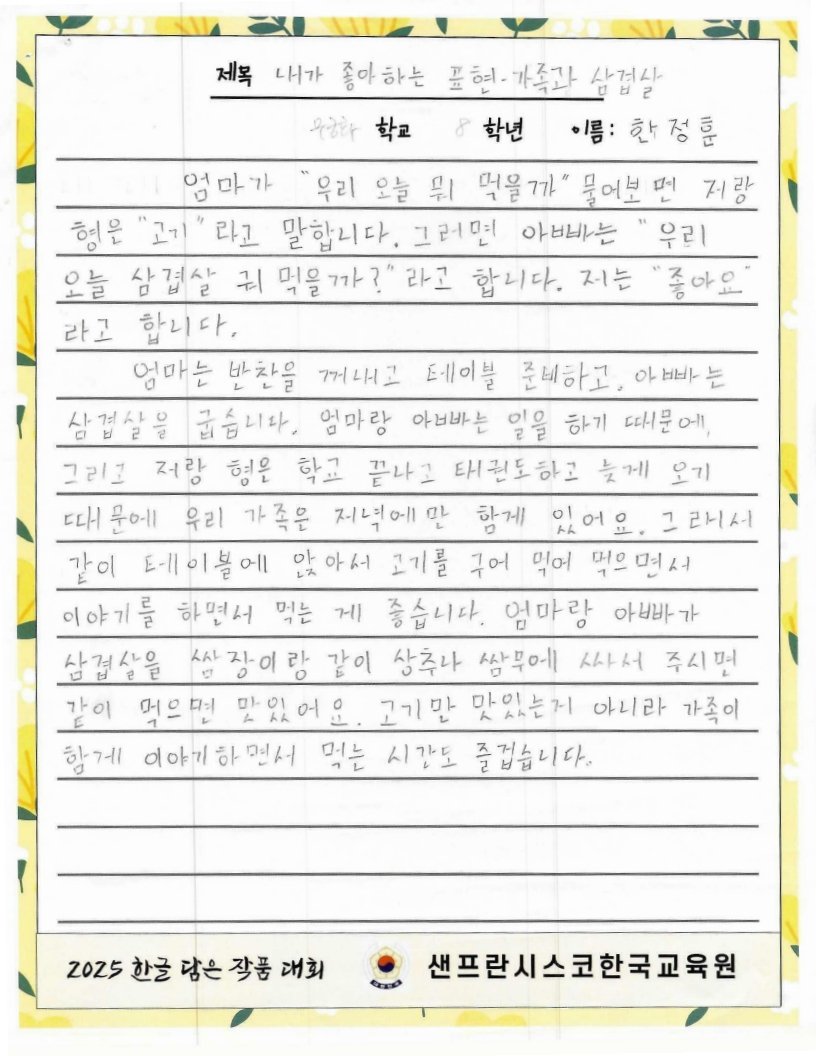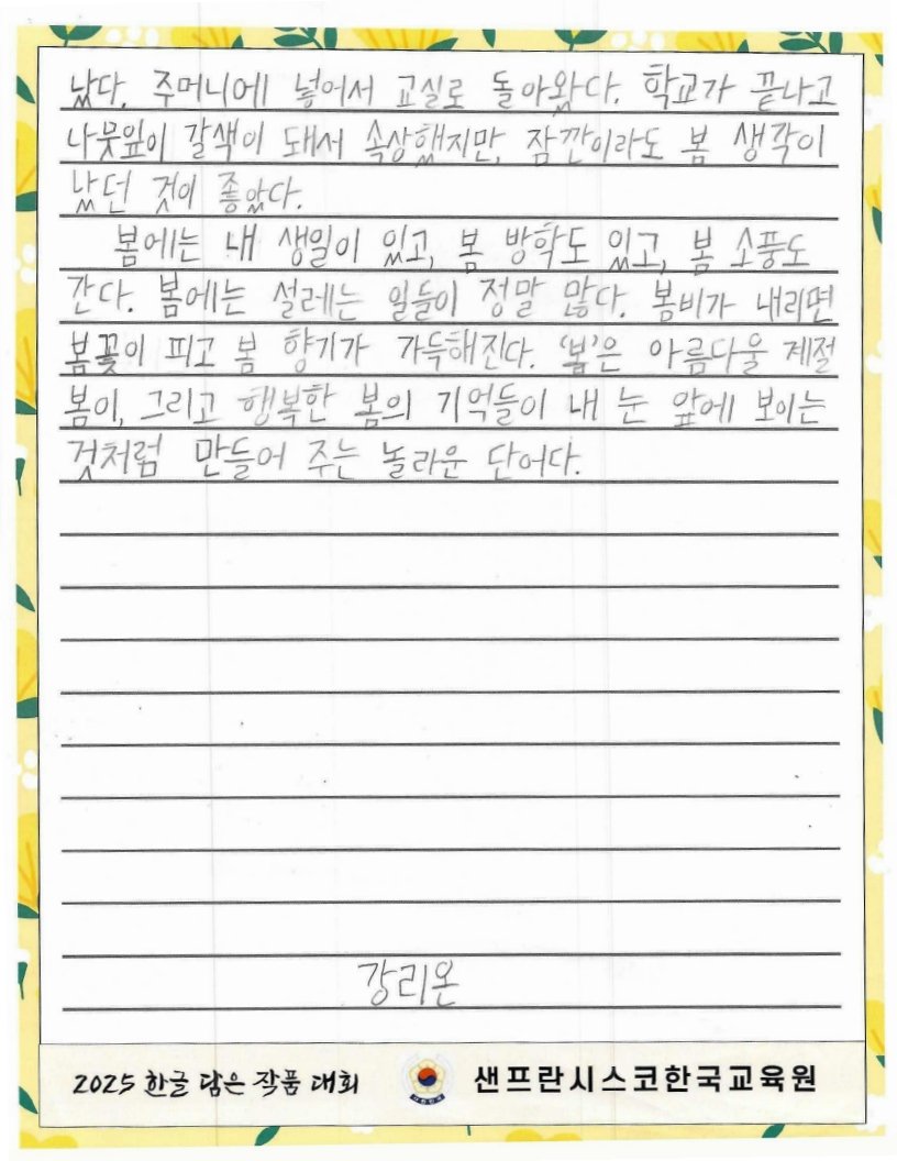 We hope to spread the beauty of Hangeul and Korean culture through the Hangeul Art Contest, for both weekend Korean schools and elementary school students by selecting artworks that express their love for Hangeul.