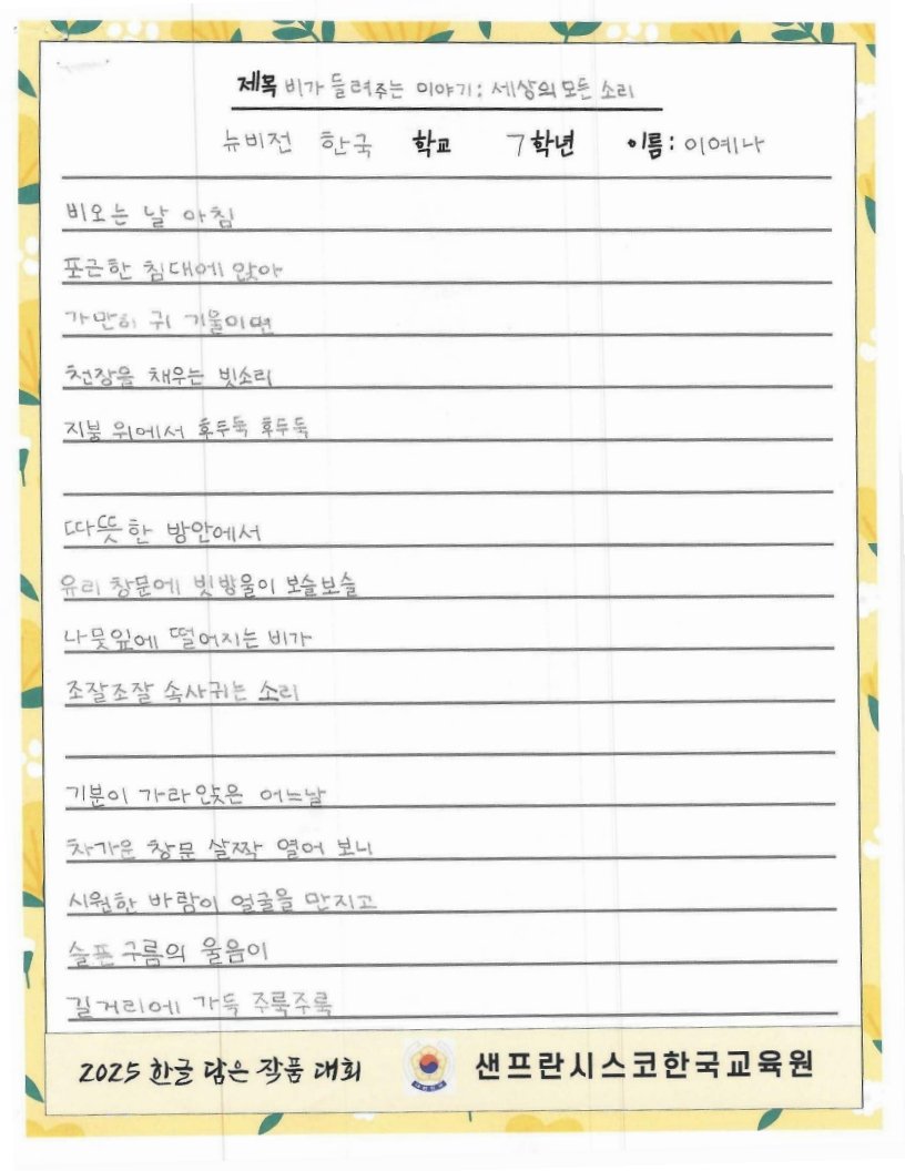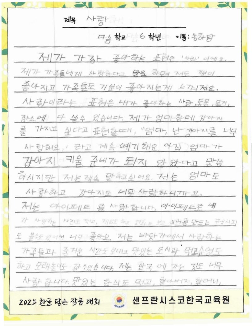 주말 한국학교, 한국어 채택 초등학교의 유초등학생을 대상으로 한글 사랑에 대한 마음을 잘 표현한 작품을 선정하여 시상하여 한글과 한국 문화의 아름다움을 널리 전하고자 합니다.