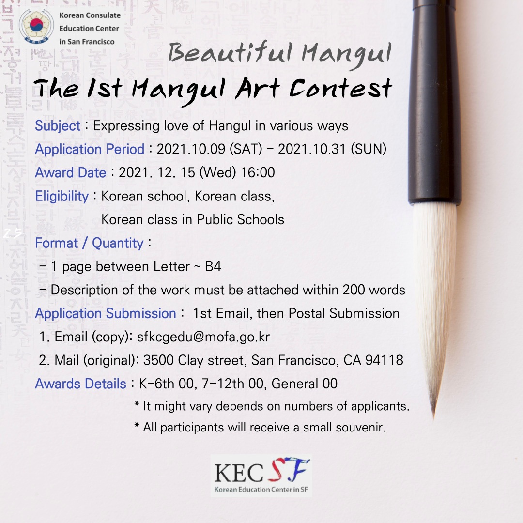 이 대회를 통해, 관할 지역 내 모든 한국학교, 미국 초중등 한국어 채택학교, 한국어 강좌 수강생(대학생 포함), 한국어를 배우고 사랑하는 모든 분들이 참여하는 축제가 될 수 있기를 바라는 마음입니다.